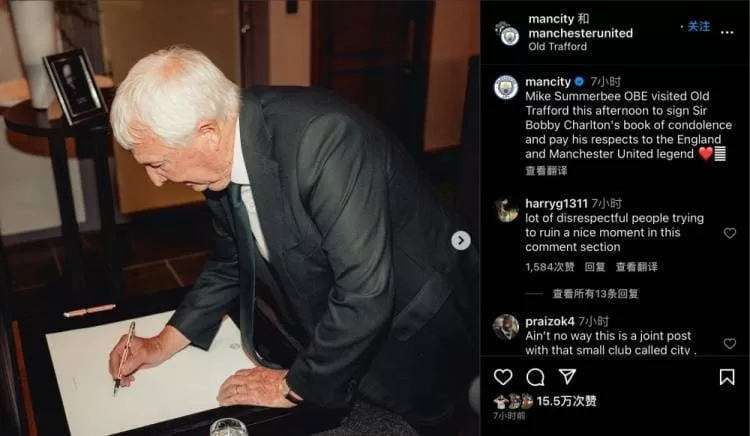 AG真人:有爱的邻居曼城名宿苏默比拜访梦剧场,并为查尔顿爵士写哀悼信